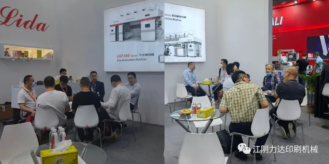 在“碳中和”、“碳達峰”、“限塑令”升級下的橡塑行業(yè),發(fā)展循環(huán)經(jīng)濟、節(jié)能減排等正當其時。這不僅僅是各界熱議的話題與挑戰(zhàn),更暗藏著巨大的新市場、新機遇,眾多新能源、5G、新材料等企業(yè)聞訊而來。開展四天來,許多觀眾紛紛來到展臺進行商務洽談,其中公司最新研發(fā)的LDF 450型多功能復合機以及LGF 450型干式復合機收到了客戶的廣泛關注,咨詢客商不斷。該機型最高機械速度為450m/min,支持無溶劑、網(wǎng)線輥、半柔版、定點涂布等多種涂布方式,實現(xiàn)一機多用,為客戶節(jié)約更多的成本,實現(xiàn)更高的經(jīng)濟效益。